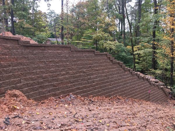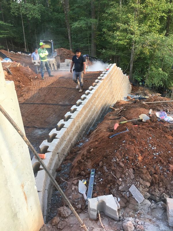 This option is the most commonly used and the more cost effective way of building a retaining wall, where machinery access and cut back for reinforcement are not an issue.